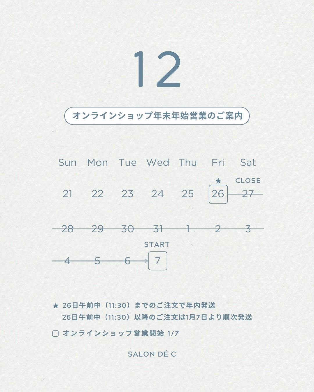 ・2025年12月26日午前11時30分までのご注文は年内発送